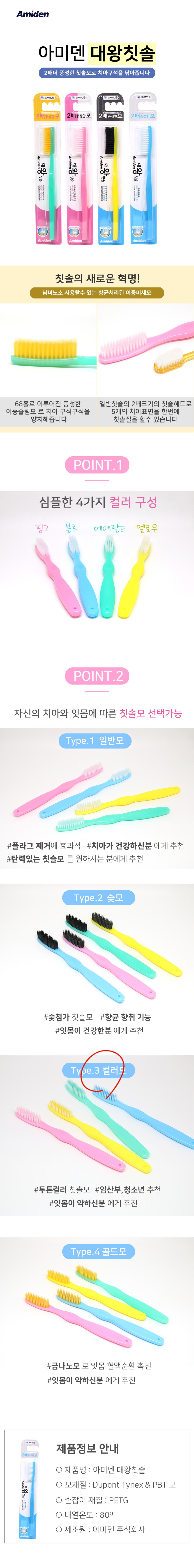 [아미덴] 부드러운 슬림모 대왕칫솔 6개