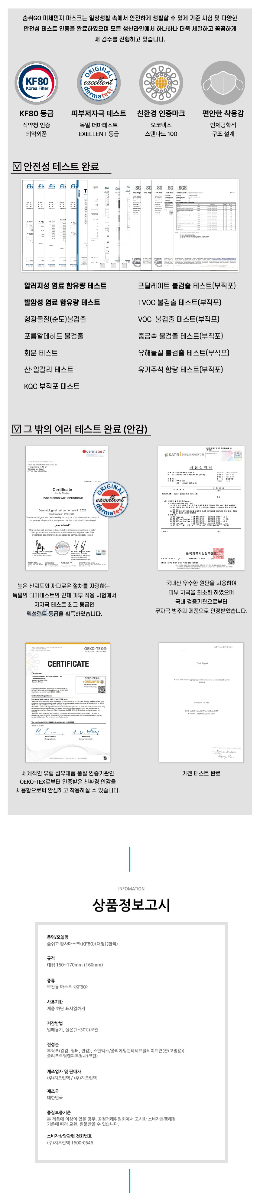 숨쉬고 황사마스크 KF80 대형 마스크 50매 흰색 개별포장