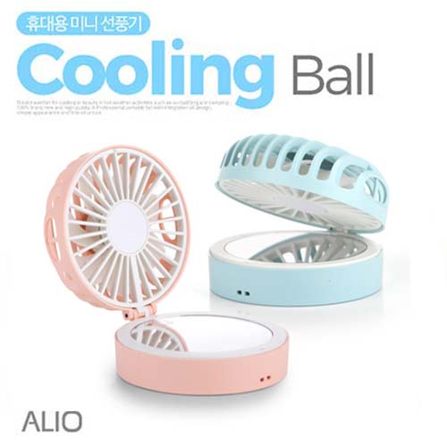[알리오] 쿨링볼 휴대용 미니 선풍기 & 거울 목걸이 탁상겸용 폴딩타입NEWBEST